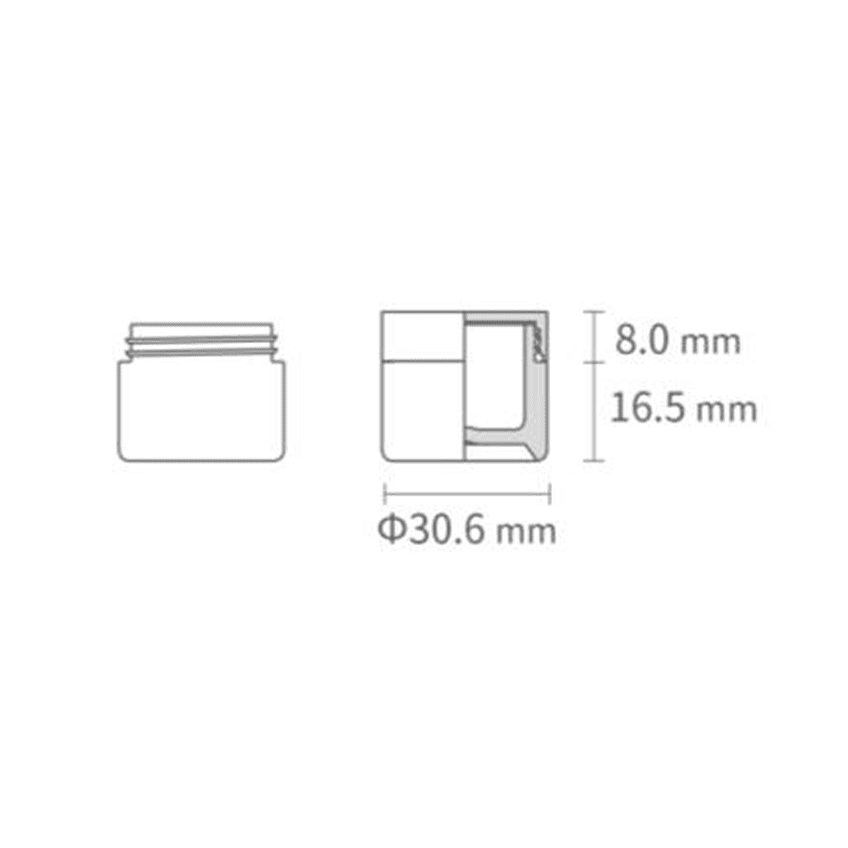 7 ml Nissha ecosense. Rondvormige premium duurzame cosmetica supplement pot. Gemaakt van patenteeerde dubbelaags bio-based Sulapac Universal (SUL-U) structuur met Nissha nek afwerking. Collectie Nissha ecosense is een hoogwaardige recyclebare en composteerbare verpakkingsoplossing voor cosmetische toepassingen op olie-basis, poeders, pillen en droog voedsel. Buitenlaag heeft kleine hints van hout in het oppervlak. 7 ml Nissha ecosense potten zijn gemaakt van materiaal dat gecertificeerd is voor industriële compostering (EN 13432 / ASTM D6400). Afmetingen: (D x H) 31 mm x 25 mm en een gewicht van 8 gram.